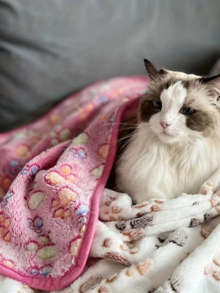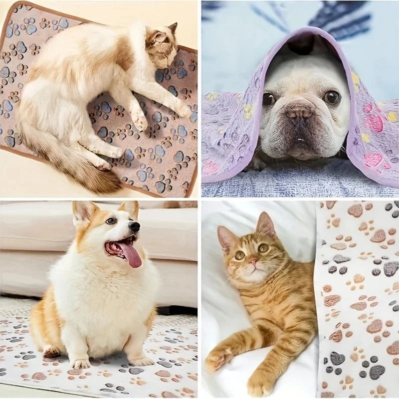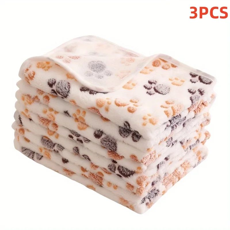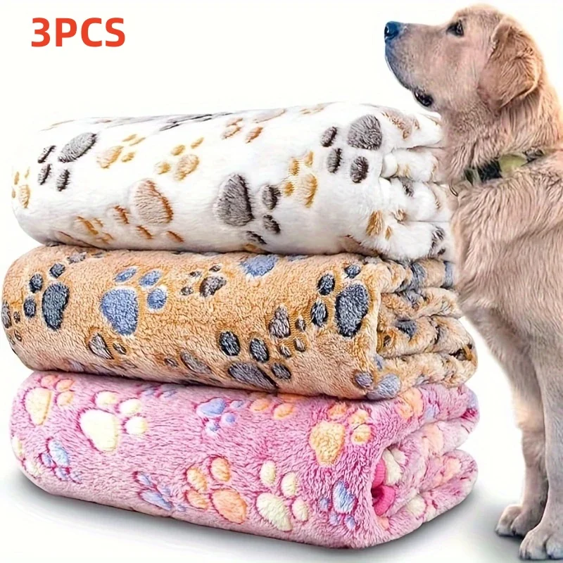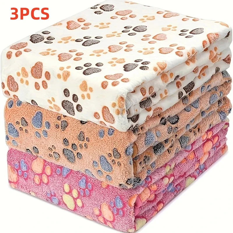 3PCS Soft Flannel Fleece Paw Foot Print Warm Blanket For Pets