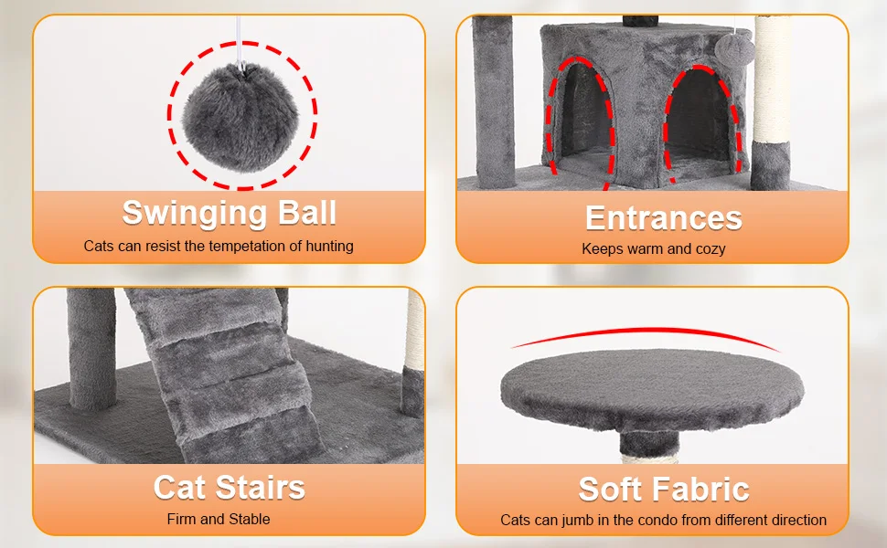 Cat 54/70 Inch Cat Tower Condo with Sisal-Covered Scratching Posts